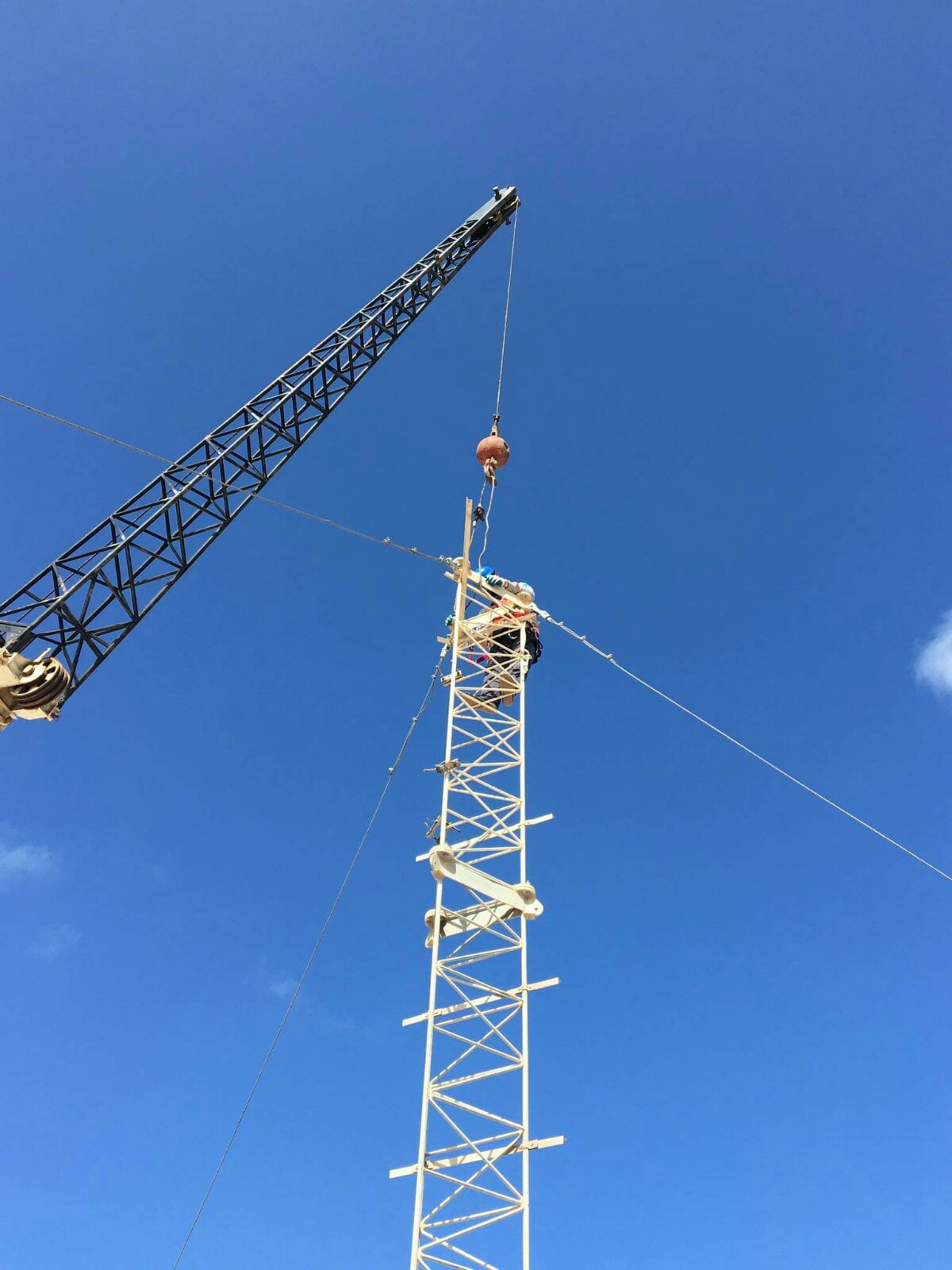 Erection of telecommunication towers for Libyana Mobile Phone company. The tower type is rooftop guyed mast with a height of 18meters above roof surface. the tower is erected either by using a crane or by using a gin pole.